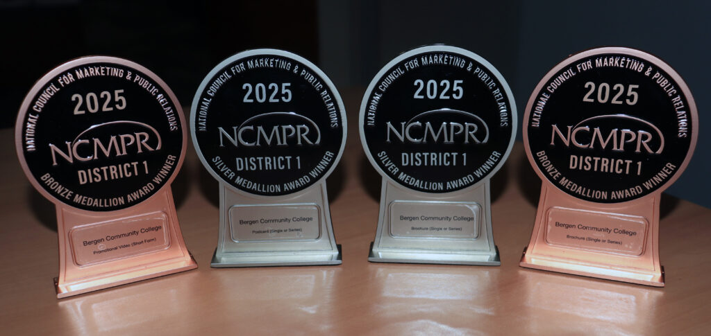PARAMUS, N.J. – The Bergen Community College Office of Marketing and Communications has secured four National Council for Marketing and Public Relations (NCMPR) Medallion Awards, a bellwether recognition for communicators in a region that includes more than 650 colleges in the Northeast and Canada. It marks the third consecutive year that Bergen has earned four Medallion Awards, bringing the institution’s total to 21 in the last 10 years. In the last two years, Bergen has also won three NCMPR Paragon Awards, a national recognition program that highlights excellence among community college communicators across the entire U.S.